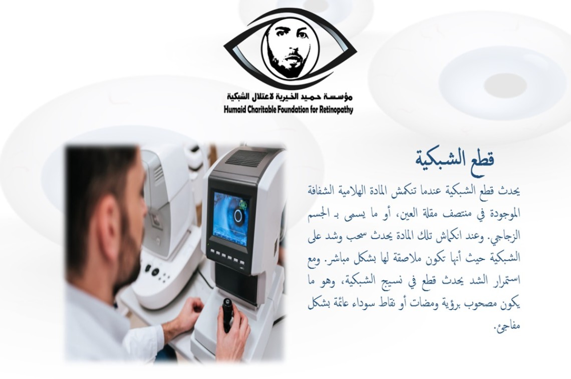يحدث قطع الشبكية عندما تنكمش المادة الهلامية الشفافة الموجودة في منتصف مقلة العين، أو ما يسمى بـ الجسم الزجاجي. وعند انكماش تلك المادة يحدث سحب وشد على الشبكية حيث أنها تكون ملاصقة لها بشكل مباشر. ومع استمرار الشد يحدث قطع في نسيج الشبكية، وهو ما يكون مصحوب برؤية ومضات أو نقاط سوداء عائمة بشكل مفاجئ.